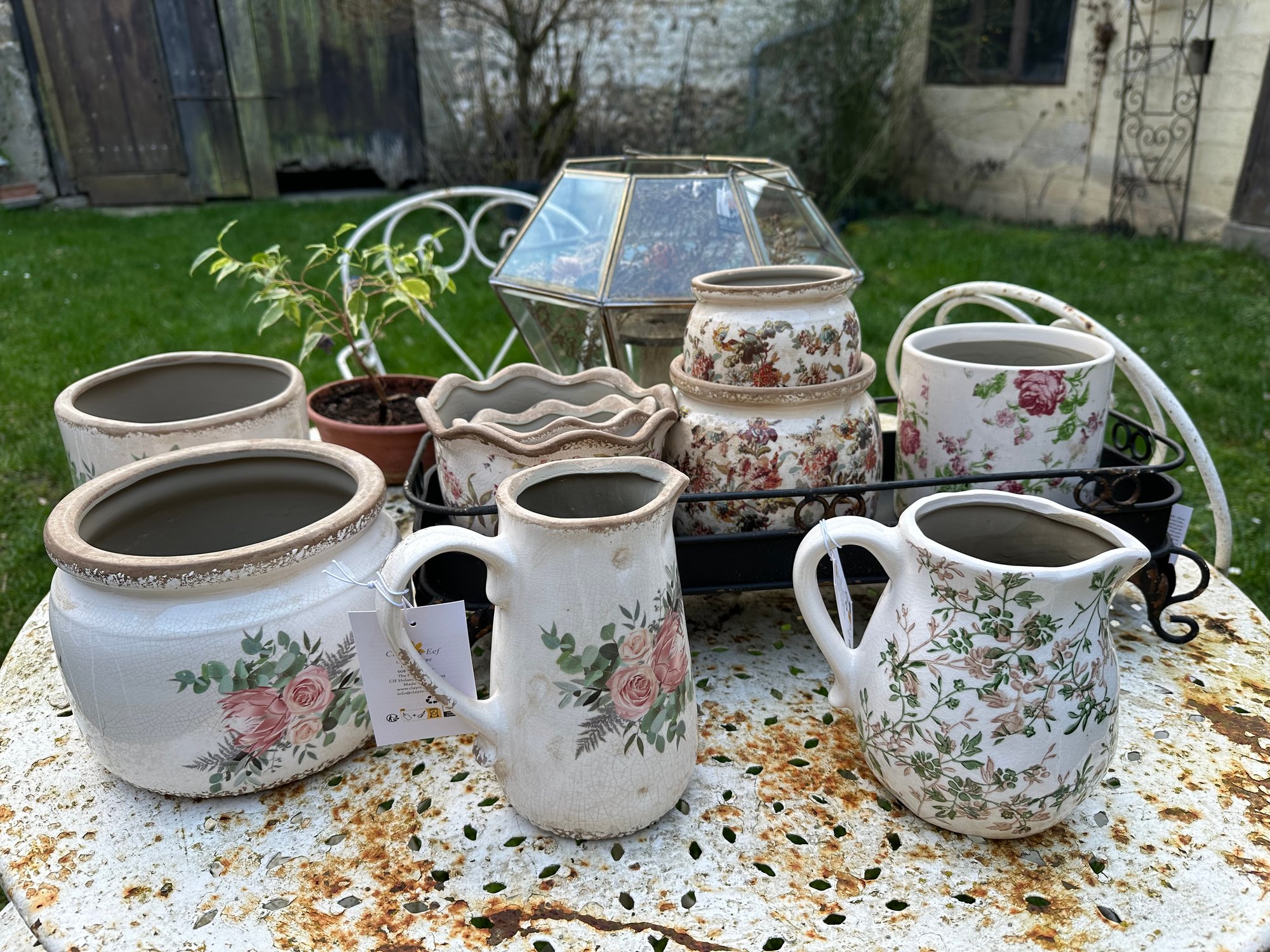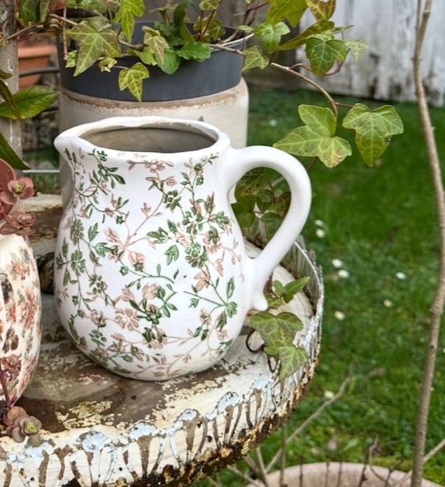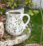 Pichet crème avec des fleurs vertes